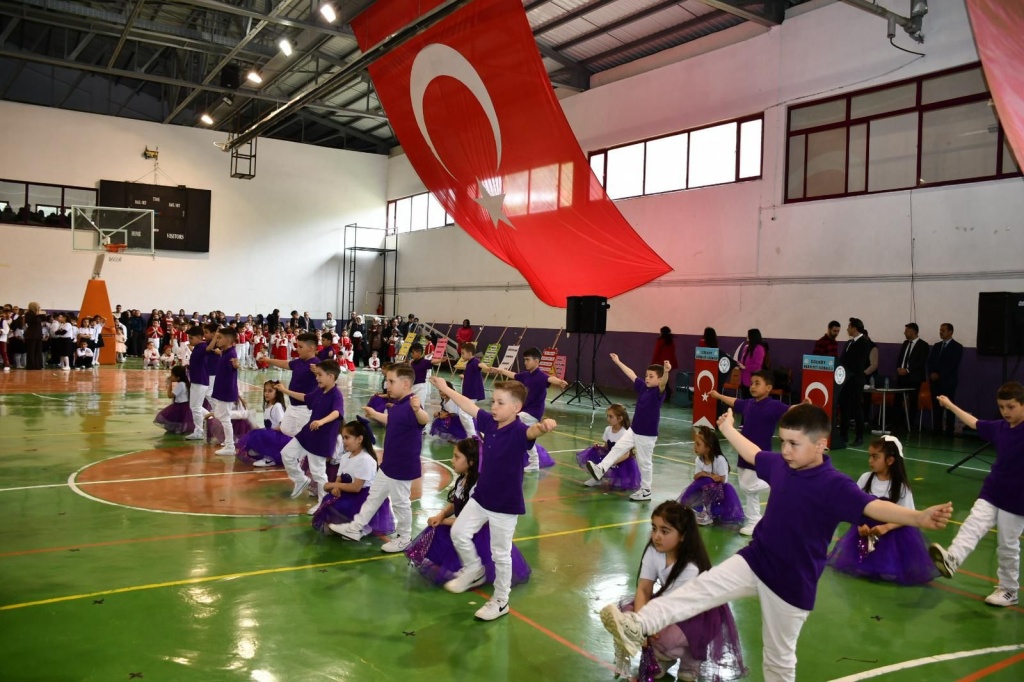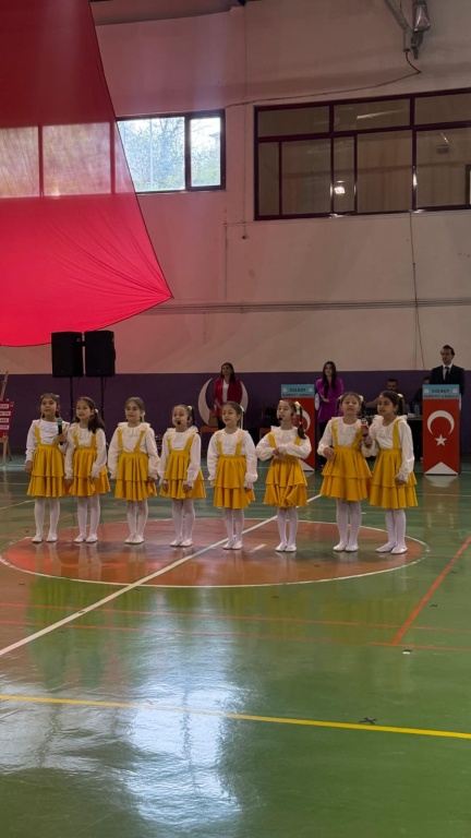İlçemiz kapalı spor salonunda 23 Nisan Ulusal Egemenlik ve Çocuk Bayramı programını çoşkuyla icra ettik. Katılımın yoğun olduğu program beğeniyle izlenildi. Okulumuzun önünde başlayan; öğrencilerimiz, velillerimiz ve öğretmenlerimizin katılımı ile ilçemiz sokaklarında devam eden kortej yürüyüşü büyük merak uyandırdı. İlçemiz kapalı spor salonunda devam eden programa Kaymakamımız Sayın Elif YAZICIOĞLU KAZANASMAZ, Belediye Başkanımız Sayın Fikri ULUDAĞ, Cumhuriyet Başsavcısı Sayın İsmail Furkan Cengiz, İlçe Jandarma Komutanı Sayın Emrah TUNÇ, İlçe Emniyet Müdürü Sayın Furkan KELEŞ, İlçe Milli Eğitim Müdürümüz Sayın Adnan ÇAKIR, daire amirleri ve halkımızın katılımıyla kutlandı. Öğrencilerimizin hazırladıkları gösteriler izleyenler tarafından büyük beğeni topladı.